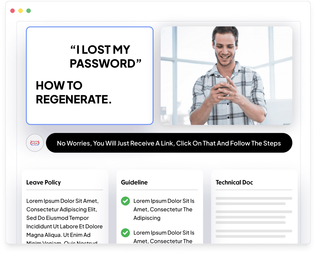 Owlexa enables employees to quickly access SOPs, HR policies, IT troubleshooting, and more. With 24/7 support, they can resolve issues independently, boosting productivity and ensuring seamless operations.